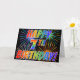 The front of this exciting, fun and eye-catching greeting card design features a colourful pattern inspired by celebratory fireworks, along with the message "HAPPY 7TH BIRTHDAY!" having a multicolored rainbow inspired gradient pattern, on a black coloured background. The inside features a customised greeting message, or could perhaps be cleared and left blank if it is desired to write a message by hand instead. A greeting card like this might be a fun, happy way of sending a greeting message to somebody who is celebrating their seventh birthday. [~Z0000355]
