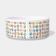 Discover our vibrant dog bowl featuring a playful pattern of colourful paw prints! adorned with stylised, rounded shapes and a stunning rainbow gradient of reds, oranges, greens, and blues. The lively, randomly scattered design adds a fun and energetic touch to your pet's dining experience. Perfect for pet lovers who want a cheerful and eye-catching bowl for their furry friend.