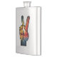 The product is a good size and came exactly as it was pictured. The lid is not attached to the flask, which could be dangerous on drunken nights... The print came out surprisingly well and looks very sharp. Would definitely recommend.