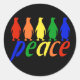 A row of rainbow penguins spell out the word "Peace." Great way to spread the anti-war message and makes a thoughtful gift for your favourite peacemonger.