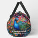 Put your custom phone number on the side of this bag in case it gets lost! This rainbow peacock duffel bag is perfect for boho carrying your luggage on your next vacation or weekend getaway.