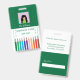 A green and white photo ID badge with the doodle of colored pencils at the bottom . This identification card was professionally designed for preschool , kindergarten , elementary school , middle or high school teachers . They're also perfect for school librarians . They are available in several colorways . See the collections for more choices . The template makes it easy to fill it with the teachers own info and picture .