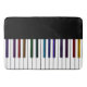 Rainbow Piano Keyboard Music Bedspread Bath Mat Rug. A beautiful piece for your piano music themed bedroom suite or studio, or a gift for your favourite pianist, musician or music lover. Classic white piano keys with the dark keys in shades of blue, purple. gold. pink and green offset with black. See the whole rainbow piano home decor and bed and bath suite.