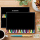 Send your greetings with this music themed envelope featuring a colourful twist of the ivory keys on both the front and back of this envelope! Shown here with the black colour option which you can easily change to your favourite. Text templates for your name and address are on the back flap, be sure to change the text colours so it shows with your chosen envelope colour.