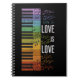 Abstract rainbow piano illustration with rainbow music notes and "Love is love" text design decoration