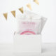 Watercolor rainbow pink baby shower favour bags with fully editable wording. The design features a modern watercolor wash, a doodle rainbow, love heart and whimsical skinny font typography. A sweet and pretty design in pink and coral. Please browse my store for coordinating baby shower invitations and enclosure cards.