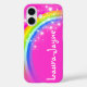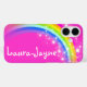 Pretty rainbow design girls pink and colourful case. Personalise with your own name up to 10 letters. This example reads Laura-Jayne. Exclusively designed and illustrated by Sarah Trett for www.mylittleeden.com
