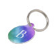 Pink, purple, and teal soft watercolor rainbow background with a custom cat or dog monogram initial and name. Type in your personalised contact information on the back of the colourful pet ID collar charm.