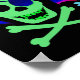 Pattern of six skull and crossbones in rainbow colours. Each skull has rainbow eyepatch and bandannas. Colourful and simple pirate skull design for Halloween or anytime.Background and border colours are customisable.