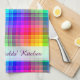 Rainbow Plaid Colourful | Add Your Name Tea Towel