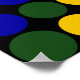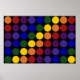 Rows of rainbow coloured polka dots cover a black background. The offset rows form diagonals of each colour: violet, indigo, blue, green, yellow, orange, and red.