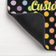 Rainbow polka dots. Seamless pattern. Custom background colour. Custom text.