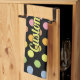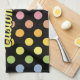 Rainbow polka dots. Seamless pattern. Custom background colour. Custom text.