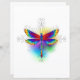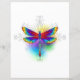 Bright, rainbow, polygonal dragonfly on white background, painted with watercolor.