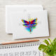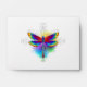 Bright, rainbow, polygonal dragonfly on white background, painted with watercolor.