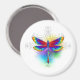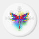 Bright, rainbow, polygonal dragonfly on white background, painted with watercolor.