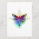 Bright, rainbow, polygonal dragonfly on white background, painted with watercolor.