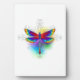 Bright, rainbow, polygonal dragonfly on white background, painted with watercolor.
