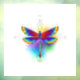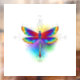 Bright, rainbow, polygonal dragonfly on white background, painted with watercolor.