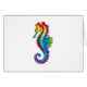Artistically drawn, bright, rainbow, polygonal seahorse on white background. Bright tattoo.
