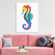 Artistically drawn, bright, rainbow, polygonal seahorse on white background. Bright tattoo.