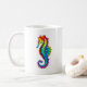 Artistically drawn, bright, rainbow, polygonal seahorse on white background. Bright tattoo.