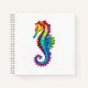 Artistically drawn, bright, rainbow, polygonal seahorse on white background. Bright tattoo.