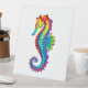 Artistically drawn, bright, rainbow, polygonal seahorse on white background. Bright tattoo.