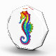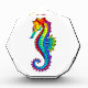 Artistically drawn, bright, rainbow, polygonal seahorse on white background. Bright tattoo.