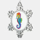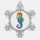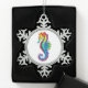 Rainbow Polygonal Seahorse Snowflake Pewter Christmas Ornament