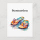 Share a piece of paradise with this customisable postcard, featuring the delightful "Rainbow Reef Flip Flops" watercolor design. Colourful sandals in fluid watercolor style bring a playful, artistic touch, perfect for sending warm wishes.