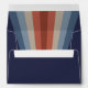 Abstract retro style reflected rainbow illustration with blue, beige, navy blue, brown, red and rust colour striped decoration