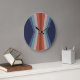 Abstract retro style reflected rainbow illustration with blue, beige, navy blue, brown, red and rust colour striped decoration