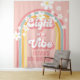 Eight is a Vibe! Retro inspired 8th birthday banner with 70's style fonts and colours, rainbow, and daisies in pink