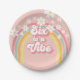 Rainbow Retro Six is a Vibe Groovy 6th Birthday P Paper Plate
