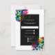 Rainbow Roses Black & White Floral Wedding RSVP Card