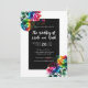 Rainbow Roses Black & White Vibrant Floral Wedding Invitation