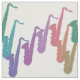 Rainbow Saxophones on White Fabric. Rainbow Saxophones dancing in a zig zag pattern against white or your choice of background colour.. Great for designing for the musician or music lover. The background colour can be changed to match your decor or music themed event.