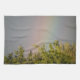 This awesome kitchen towel features a beautiful landscape photo of a rainbow over the top of some trees. The photograph was taken immediately after a rainstorm to capture the vivid colours of the rainbow. The surrounding sky is grey with cloud cover.