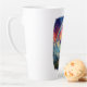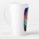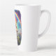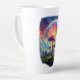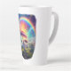 A beautiful latte mug with a pink mushroom and rainbow sky background