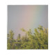 This awesome notepad features a beautiful landscape photo of a rainbow over the top of some trees. The photograph was taken immediately after a rainstorm to capture the vivid colours of the rainbow. The surrounding sky is grey with cloud cover.
