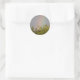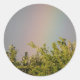 This sheet of round stickers features a beautiful landscape photo of a rainbow over the top of some trees. The photograph was taken immediately after a rainstorm to capture the vivid colours of the rainbow. The surrounding sky is grey with cloud cover.