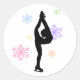 Our Rainbow Snowflakes Ice Skating Party Sticker features the black silhouette of a figure skater surrounded by rainbow snowflakes.