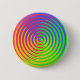 Here is a colourful pin with an abstract spiral rainbow pattern swirling around a central target in colours of green, blue, yellow, orange and red.