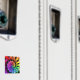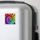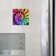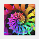 This magnet features a fractal art spiral with a rainbow of colours, including red, orange, yellow, green, blue, purple, and pink on black.