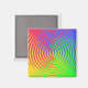 Here is a colourful magnet with an abstract spiral rainbow pattern swirling around a central target in colours of green, blue, yellow, orange and red. Could be used in the context of LGBT.