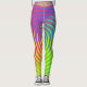 These leggings present an abstract spiral rainbow pattern swirling around a central target in colours of green, blue, yellow, orange and red.