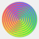 Here are colourful stickers with an abstract spiral rainbow pattern swirling around a central target in colours of green, blue, yellow, orange and red. Could be used in the context of LGBT.