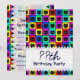 Cute and funky black cat silhouette faces on a multicoloured rainbow square background. This cartoon cat pattern is very hippie style and will make a great gift for a cat lover!