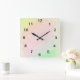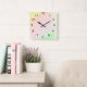 This clock will go with any colored wall. With a rainbow full of colors and 1-12 printed in black on the face of the clock. Available in 2 round sizes and a square clock. Makes a great gift. This clock screams summer all the way. Goes great on any wall.